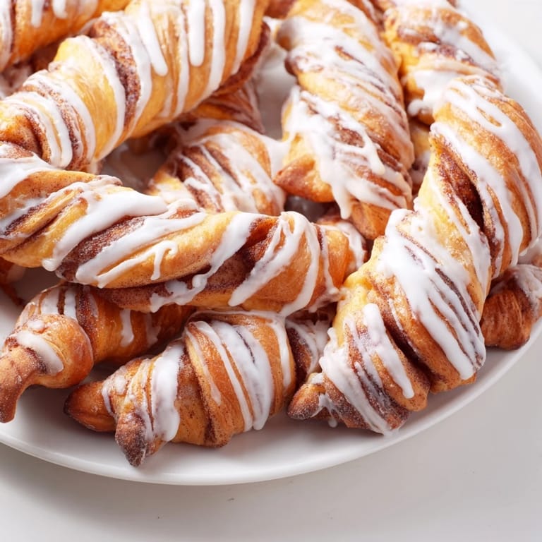 - While the twists cool just enough to handle, whisk together powdered sugar, milk, and vanilla until smooth, then drizzle generously over each twist so it soaks in slightly while they're still warm. The warmth helps the glaze set but stay glossy.