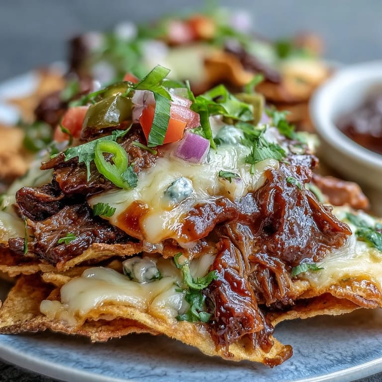 I made these for a playoff game last year, and by halftime the pan was empty except for a few orphaned jalapeño slices. My friend Sarah, who usually picks at appetizers, went back three times and declared them better than anything she'd ordered at a sports bar. The beauty is in the layers: the beef gets sweet and tangy from the sauce, the cheeses melt into a gooey blanket, and the cold toppings add crunch and brightness right when you need it. I've watched people who claim they don't like nachos change their minds halfway through their first loaded chip.