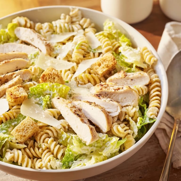 Save I discovered this bowl during a weeknight dinner crisis when my CSA box delivered an unexpected head of romaine and I had leftover pasta from the night before. Something about the warm grilled chicken hitting cool crisp lettuce just clicked in that satisfying way that makes you put down your fork and say oh this works. Now it is my go-to when I want something substantial but not heavy.
