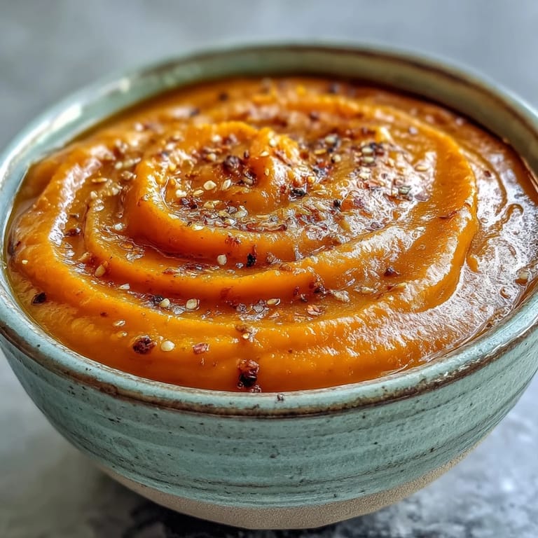 The vibrant orange color of this soup makes it a stunning canvas for garnishes. I love the contrast of a swirl of coconut milk against the orange background, maybe with a few springs of cilantro creating little green islands. For texture contrast, nothing beats some toasted pumpkin seeds or even a handful of homemade croutons that slowly soak up the soup's flavor as you eat.