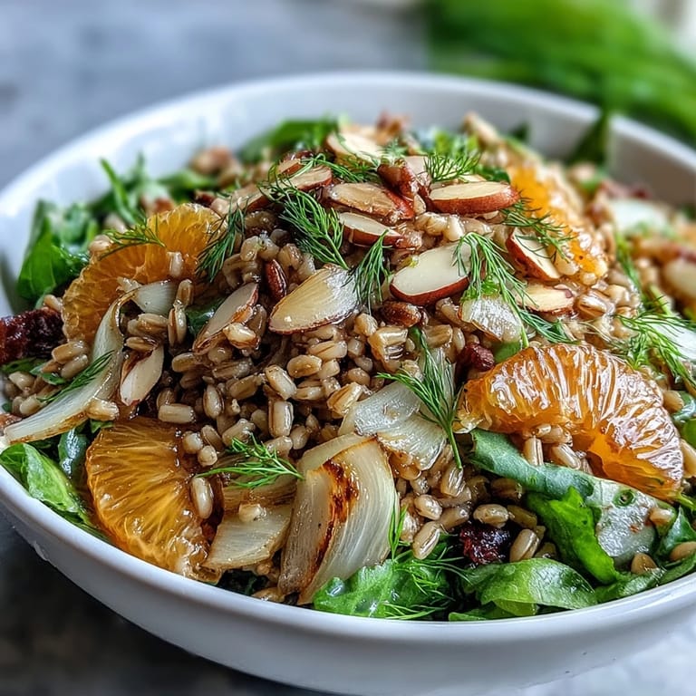 Save There's something about January that makes me crave brightness, and this farro salad arrived in my kitchen on one of those gray afternoons when I needed color on my plate. I'd just bought fennel at the farmers market—those pale bulbs with their feathery tops still attached—and I knew immediately they belonged with something warm and nutty. The combination of chewy farro, crisp fennel, and those pockets of juicy orange felt like an answer to a question I didn't know I was asking.
