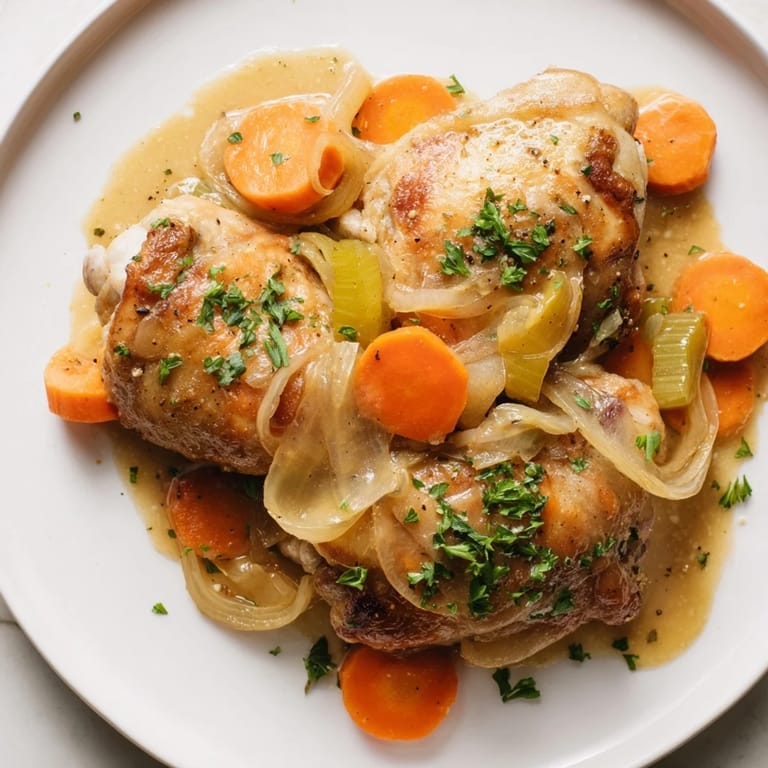 Save I stumbled on this recipe during a rainy Sunday when I had a jar of sweet pickled onions sitting in the fridge and no real plan for dinner. The chicken thighs were on sale, and I remembered how my aunt used to braise chicken low and slow until it practically fell off the bone. I threw everything into my Dutch oven, and three hours later, the kitchen smelled like a hug. It's become my go-to when I want comfort without any fuss.