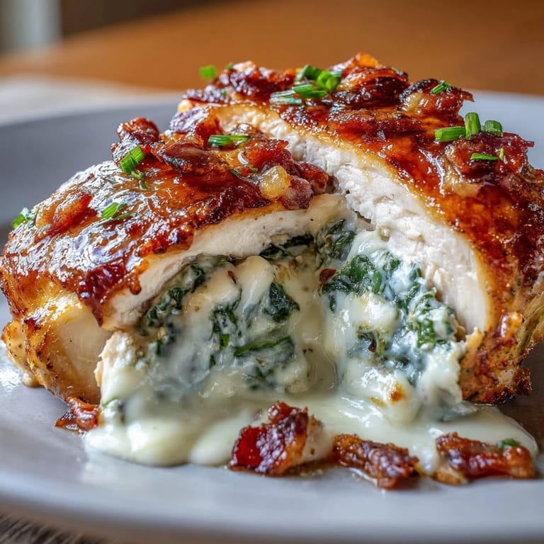 Save There's a moment when you're standing at the stove on a Tuesday evening, tired from work, and you realize you need dinner that actually tastes like you tried—that's when this chicken came into my life. My sister had mentioned stuffing chicken with bacon and spinach in passing, almost like it wasn't a big deal, but something about the combination stuck with me. The first time I made it, the kitchen filled with this incredible aroma of garlic and melting cheese, and I knew I'd stumbled onto something that would become a regular rotation. It's the kind of dish that looks fancy enough to serve guests but simple enough that you don't stress about it on a weeknight.