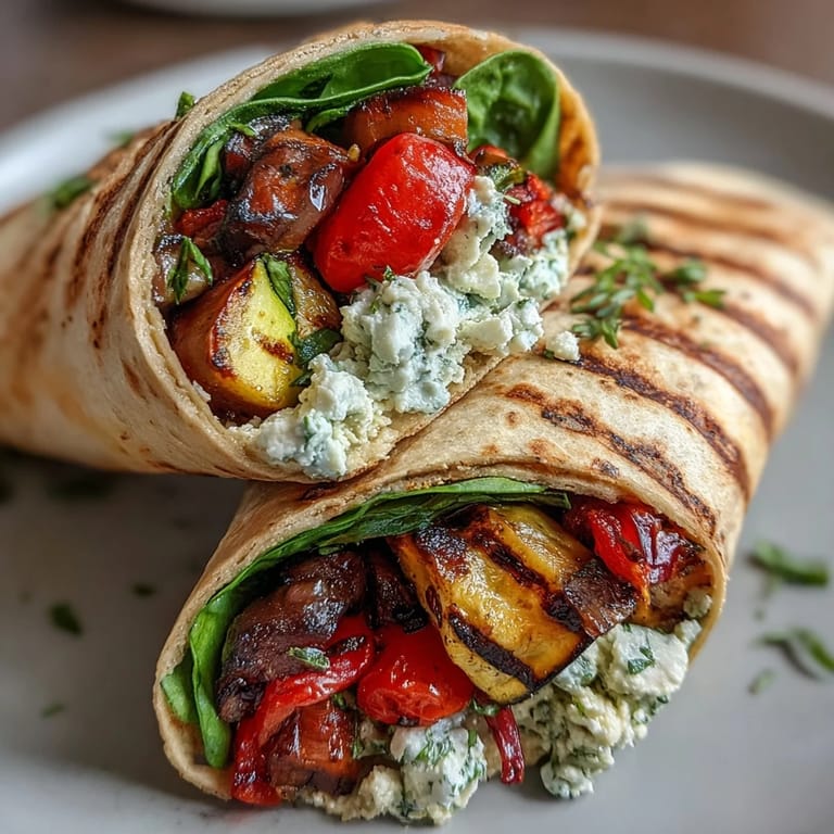 Save My neighbor knocked on the door one summer evening with a basket of zucchini and bell peppers from her garden, and I realized I had exactly one hour to turn them into something impressive for dinner guests. I'd never made grilled vegetable wraps before, but I knew the grill was already warm and hummus was waiting in the fridge. Something about the simplicity of it clicked—no complicated techniques, just fresh vegetables and a little char from the heat. That night, everyone asked for the recipe, and I've been making these wraps ever since.