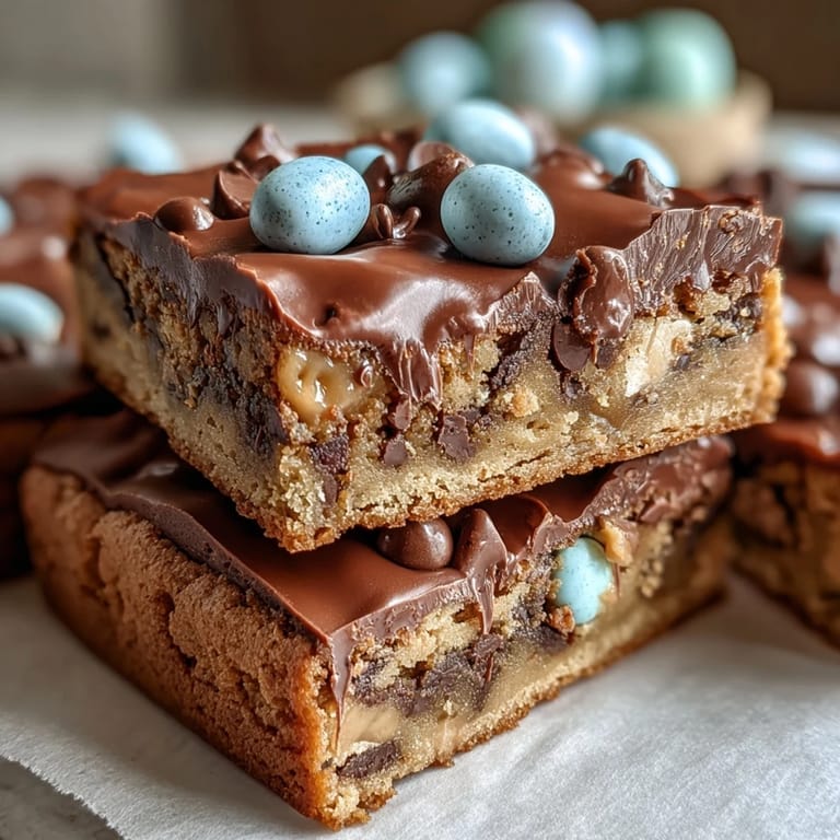 Save These bars bring the warmth of classic peanut butter cookies with the festive charm of Easter treats. The subtle vanilla and brown sugar deepen the flavor profile, while the gentle sweetness of chocolate chips complements the candy shells perfectly. Made in under an hour, they’re ideal for spontaneous celebrations or planned springtime feasts.