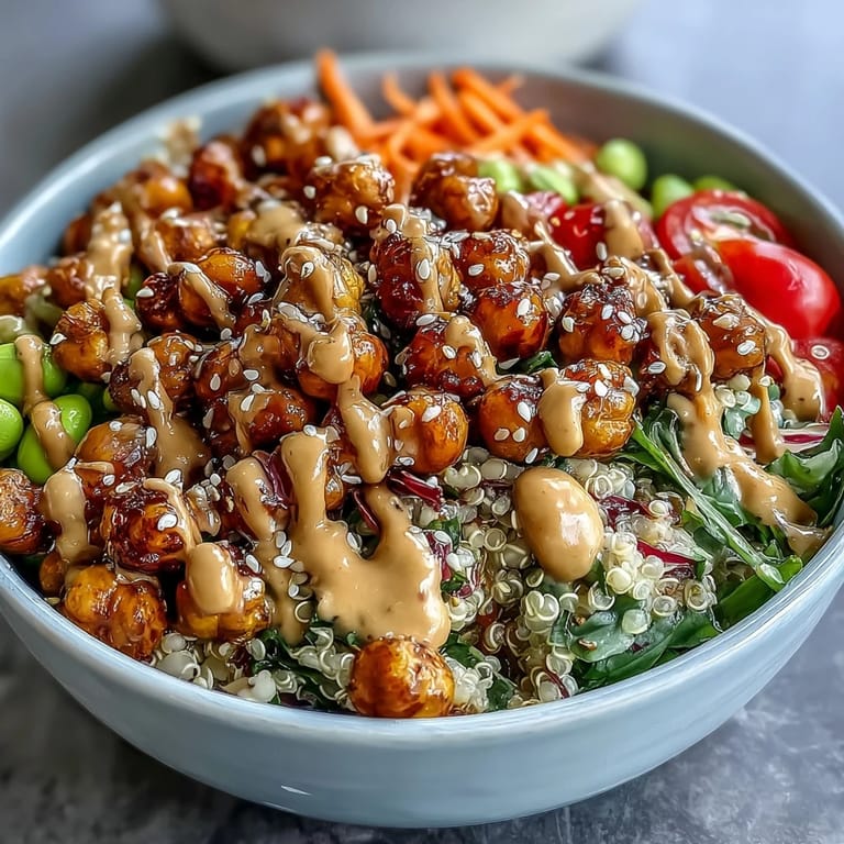 Save My coworker brought this bowl to lunch one Wednesday, and I watched her eat it with such genuine satisfaction that I had to ask for the recipe. The combination of crispy chickpeas and that silky peanut sauce felt like a small revelation—suddenly all those separate ingredients made perfect sense together. She laughed when I admitted I'd been eating sad desk salads for months, and handed me a handwritten note on a napkin. That bowl became my answer to "what's for lunch," and now I make it almost religiously.