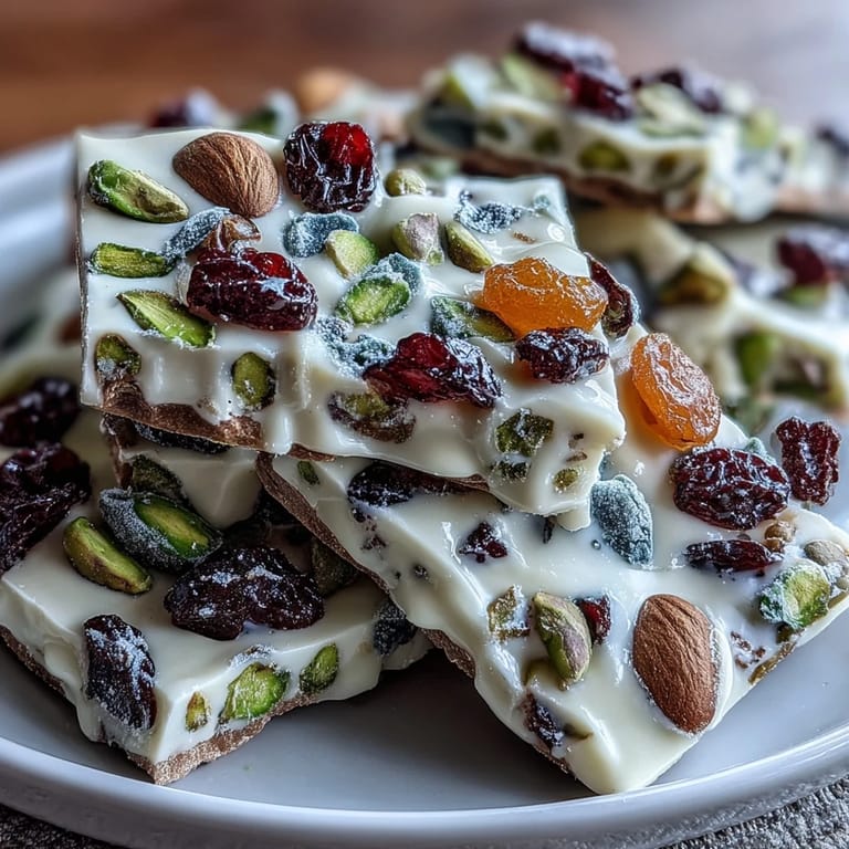 Save One afternoon, while reorganizing my pantry, I found a forgotten bar of premium white chocolate tucked behind some baking supplies. The label promised smoothness and quality, and something about its creamy color made me want to do it justice. Rather than melt it into a sauce or fold it into a dessert, I thought of something simpler: letting the chocolate shine with just a handful of bright, crunchy toppings. That first batch, spread thin and studded with pistachios and jewel-toned dried fruit, became the kind of treat I now make whenever I want something that looks fancy but requires almost no skill.