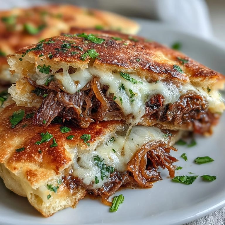 Save My neighbor stopped by one evening asking what smelled so incredible, and when I opened the slow cooker after eight hours, the kitchen filled with this cloud of caramelized beef and wine that made everything else seem less important. That's when I realized I'd accidentally created something magic by combining my love for French dips with the fluffy naan my family keeps requesting. The idea seemed ridiculous at first—beef and Indian bread shouldn't work this well together—but the moment I bit into that first melty, steaming sandwich, I knew this was going into permanent rotation. It's the kind of dish that makes people stop mid-conversation to ask for the recipe, and honestly, I don't blame them.