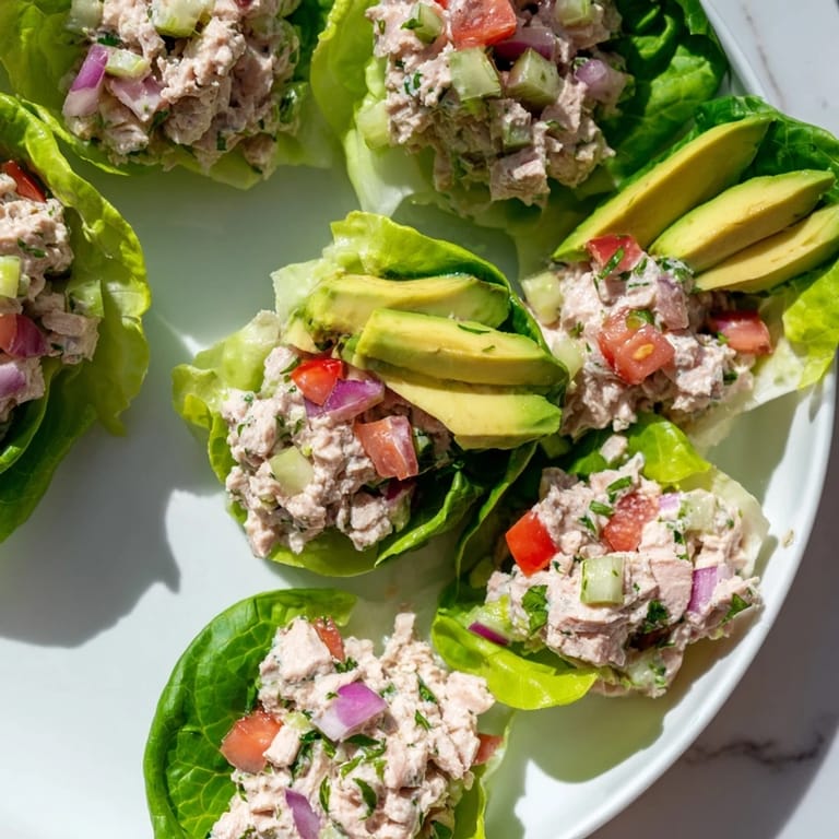 Save A fresh and satisfying lunch or light dinner featuring protein-packed tuna salad wrapped in crisp lettuce leaves—perfect for a quick, low-carb, and nutritious meal.